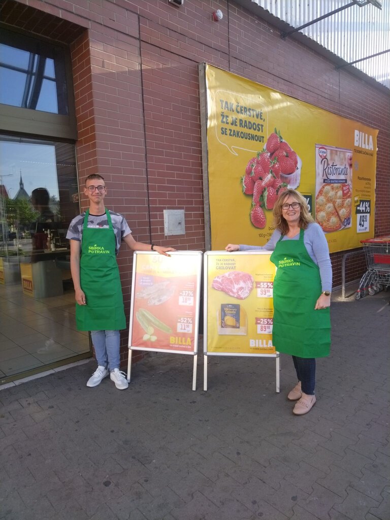 V sobotu 26. dubna 2025 jsme se již poněkolikáté zapojili do celorepublikové Sbírky potravin, která patří k tradičním dobrovolnickým akcím na podporu lidí v nouzi. Tentokrát jsme rozdělili síly mezi dvě města – Stochov a Louny – kde naši klienti a pedagogové působili v prodejnách Tesco Stochov a Billa Louny.