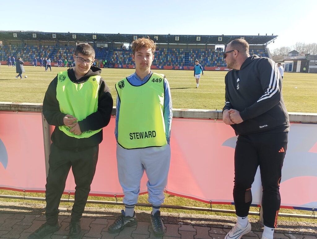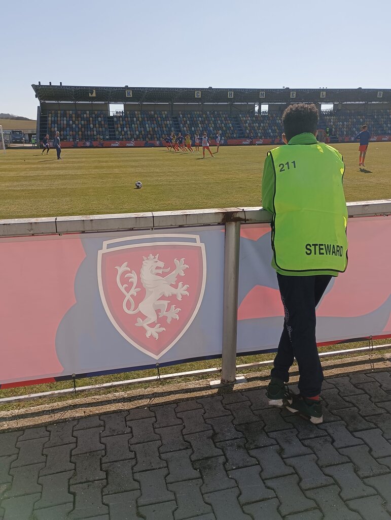 19. 3. 2025 byla naše škola požádána o pomoc. Důvodem bylo zajištění pořadatelské služby při kvalifikačním utkání ve fotbale hráčů do 19-ti let. Jednalo se o výběry Holandska a Chorvatska. Utkání se hrálo v nedalekých Blšanech, na bývalém prvoligovém stadionu.